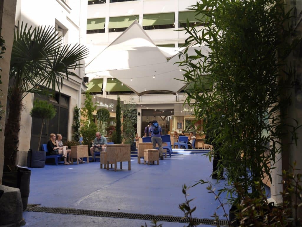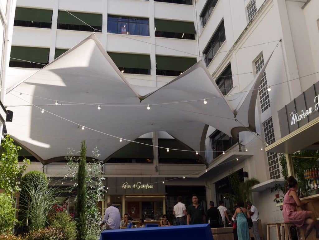 Depuis mi juillet, la cour bleue du BHV Homme a pris des airs d’oasis pour visiteurs éreintés.